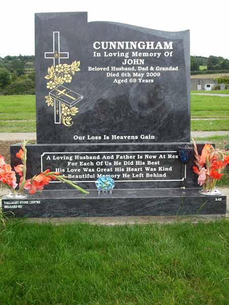 Tallaght Stone Centre can make any headstone seen on our website suitable for Bohernabreena cemetery; you can get any shape headstone in a variety of different colour granites.