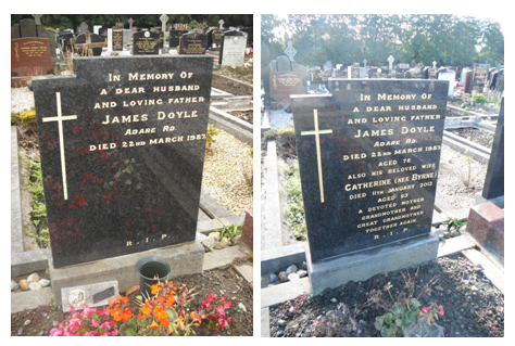 Generally Inscriptions takes 3 / 6 weeks depending on the cemetery and the weather. Please find a selection of examples of additional headstone inscriptions below :